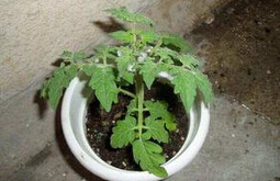 6、待幼苗达3~4叶时,即可移栽入盆。番茄阳台盆栽种植小苗入盆前,先将花盆洗净,盆底孔放置瓦片或填塞尼龙纱,装入盆土。